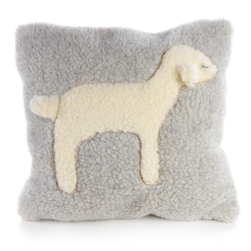 100% natürlich kuscheln. Das Kuschelkissen mit Tier-Applikation Schaf  ist aus Wollflor genäht und mit Granulat aus 100% Schafschurwolle gefüllt. Es hat einen Reißverschluss, so dass die Schafwollfüllung immer mal aufgelockert oder zum Waschen des Bezugs entnommen werden kann.