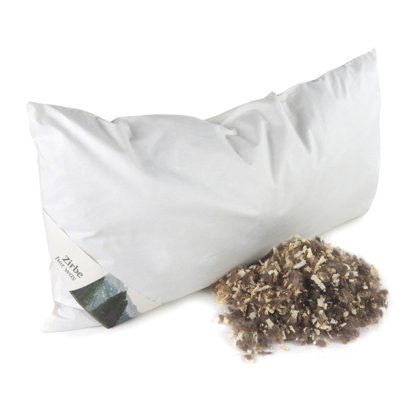 Unsere Kissen Zirbe sind gefüllt mit Zirbe-Spänen und Alpakawoll-Kügelchen in einem Inlett aus 100% naturbelassener Baumwolle – ungebleicht und ungefärbt.